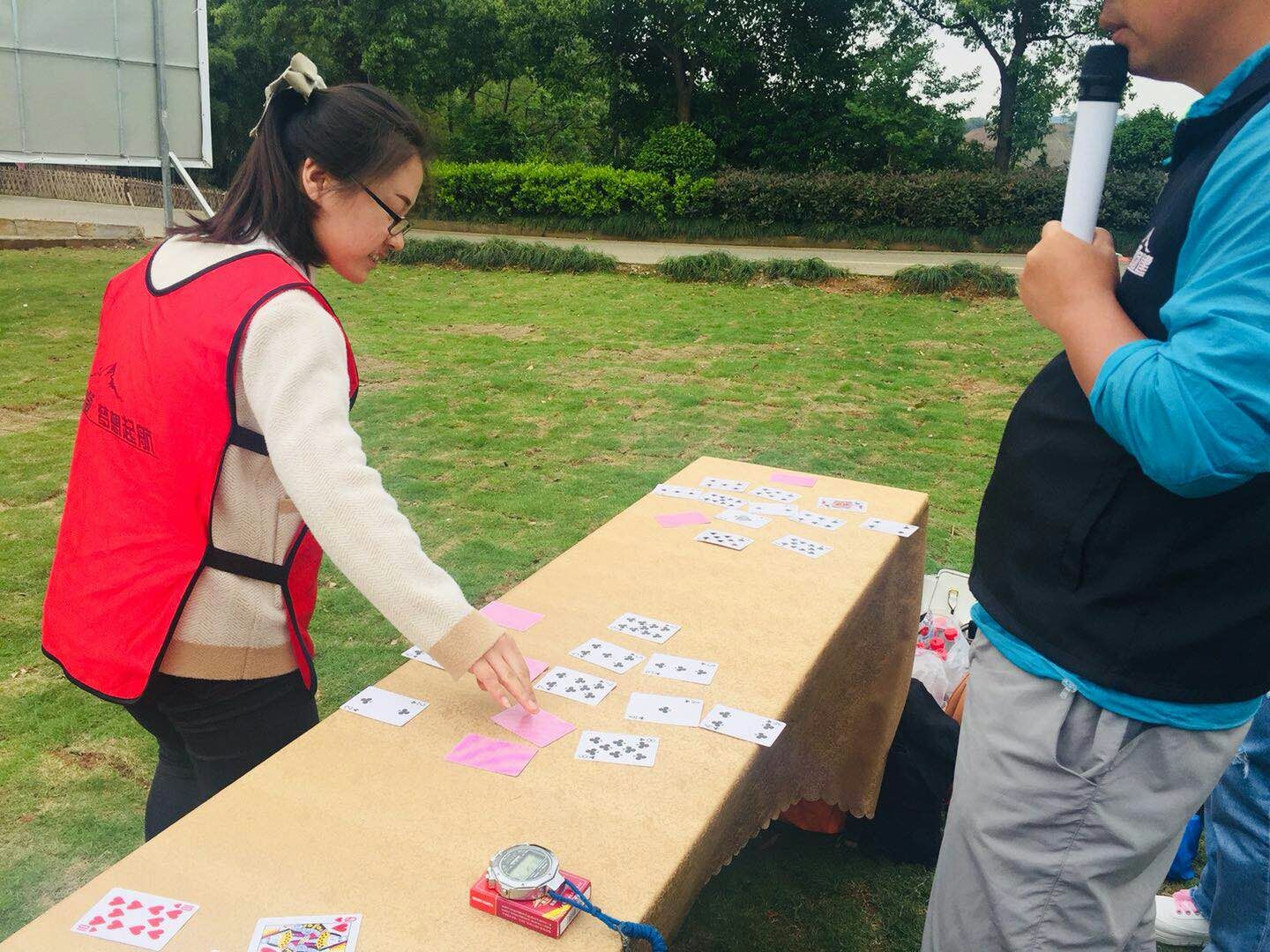 这个游戏是考验引导者跟队友之间的配合程度,游戏进行了三轮,每轮的游戏规则,以及扑克牌的摆放都会变化,考验难度越来越大。