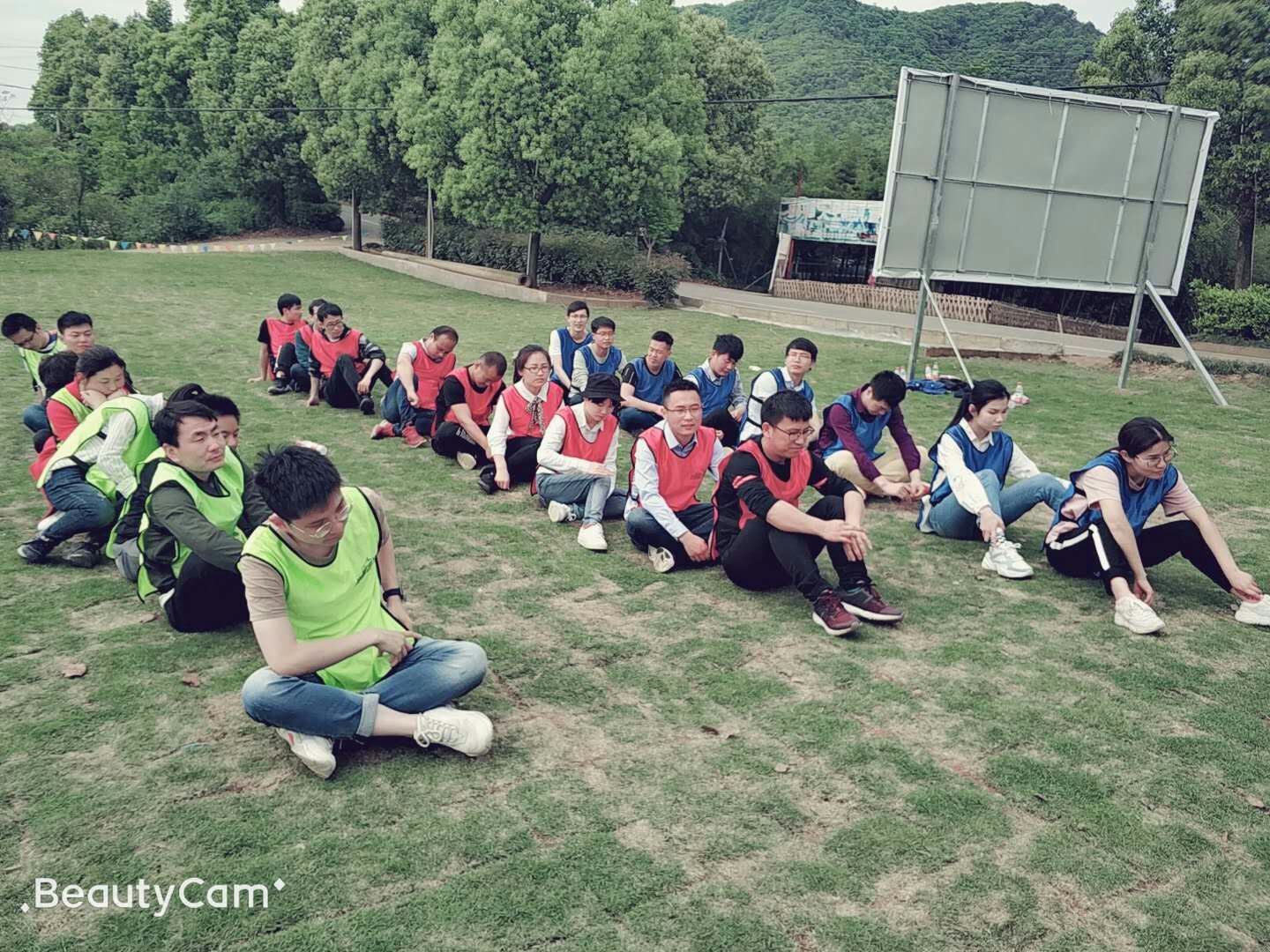 团队文化展示,红绿蓝三小队取队名,喊口号,唱队歌。红队《天下第一队》“勇往直前,无懈可击”; 绿队《王牌巅峰队》“冲锋冲锋,冲向巅峰” ;蓝队《菜刀队》“菜刀菜刀,有谁不服,菜刀征服”。