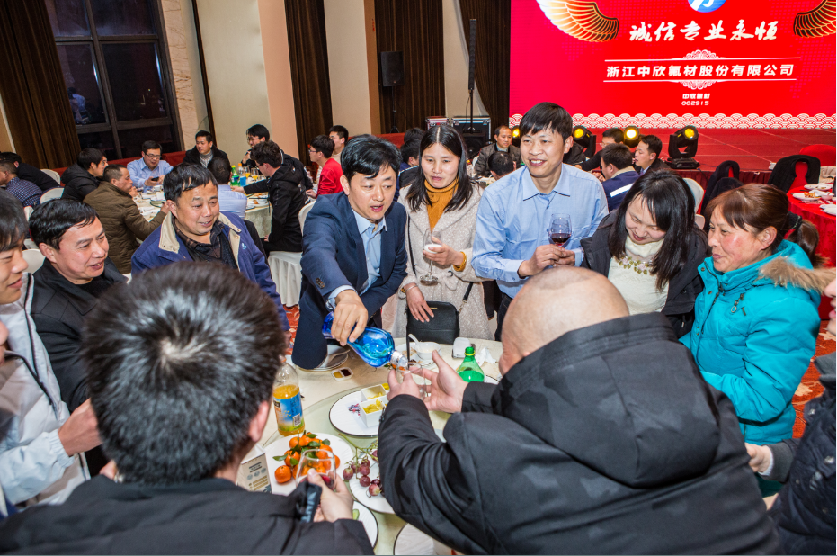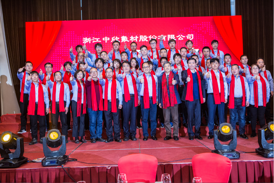 2月14日,浙江中欣氟材股份有限公司在上虞天玥开元名都大酒店举行了2019年年初工作会议暨2018年度先进表彰大会。公司领导及员工欢聚一堂,共同回顾收获的2018,展望光明的新年。